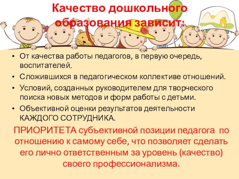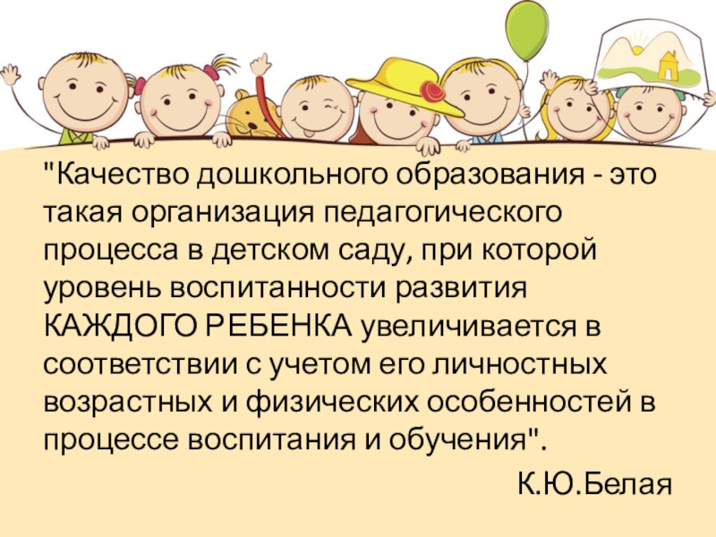 Слайд 6"Качество дошкольного образования - это такая организация педагогического процесса в детском