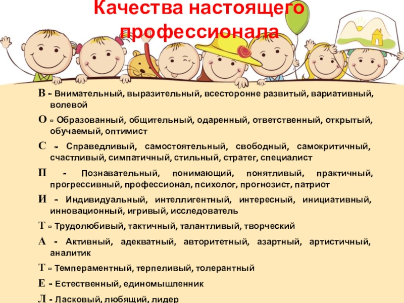 В - Внимательный, выразительный, всесторонне развитый, вариативный, волевой