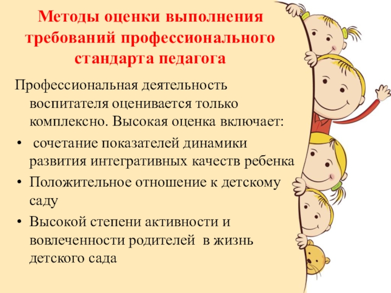 Слайд 18Методы оценки выполнения требований профессионального стандарта педагога
