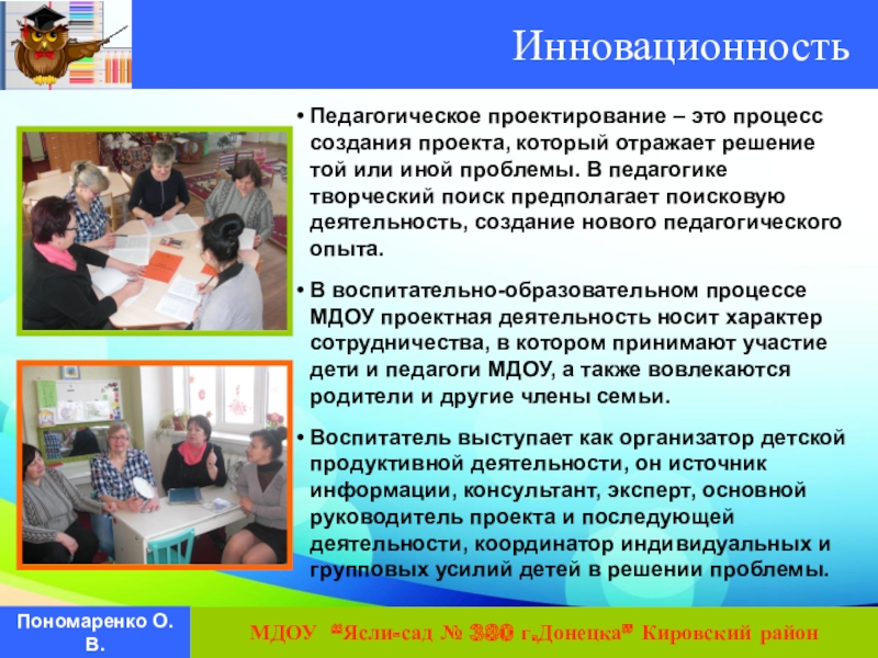 Творческие: как правило, не имеют детально проработанной структуры совместной деятельности участников. Результаты оформляются в виде детского праздника, выставки, дизайна и рубрик газеты, альбома, альманаха и пр.