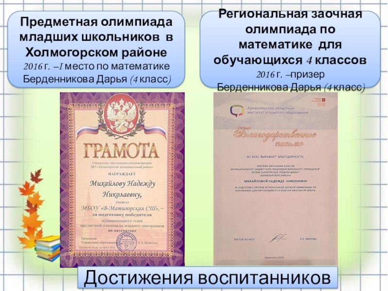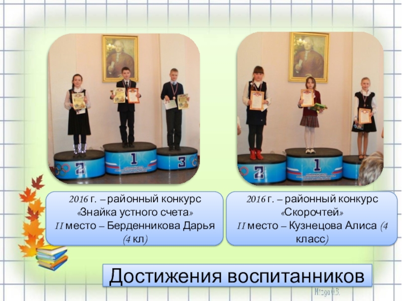 2016 г. –I место по математике Берденникова Дарья (4 класс)