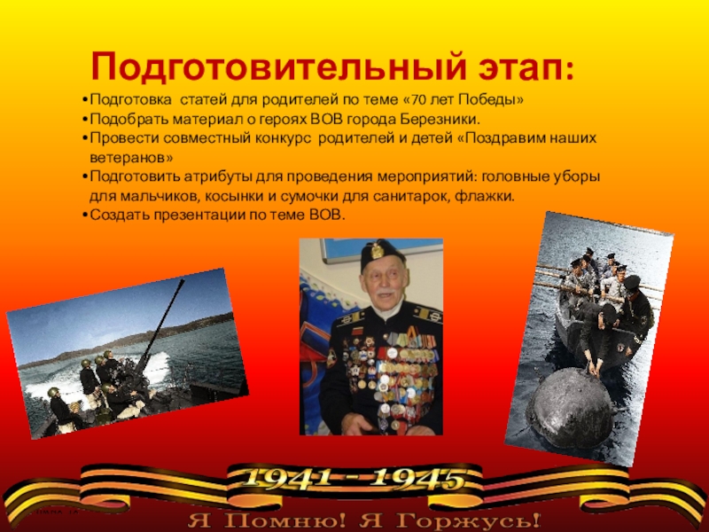 Приближается праздник 70 лет Победы. Победа в Великой Отечественной войне – наша слава и гордость. День Победы достоин того, чтобы принять в нем вместе с детьми и родителями самое активное участие.