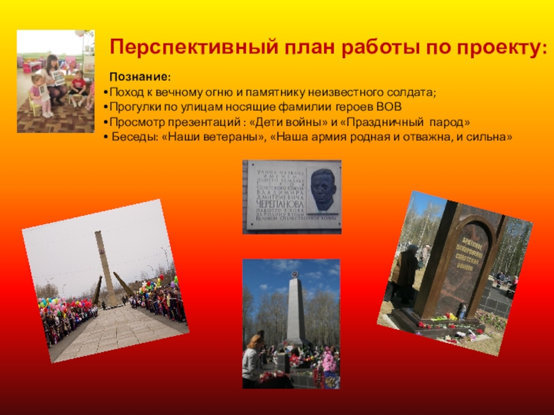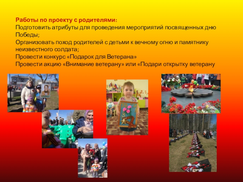 Организовать поход родителей с детьми к вечному огню и памятнику неизвестного солдата;