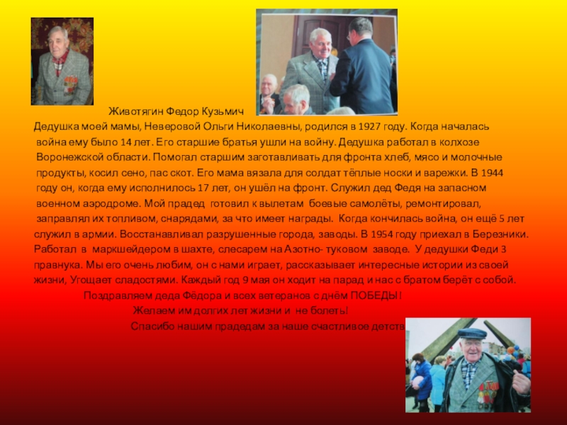 Дедушка моей мамы, Неверовой Ольги Николаевны, родился в 1927 году. Когда началась