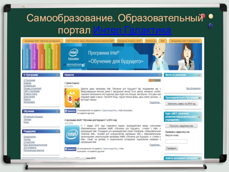 Слайд 30Самообразование. Образовательный портал Интел Галактика