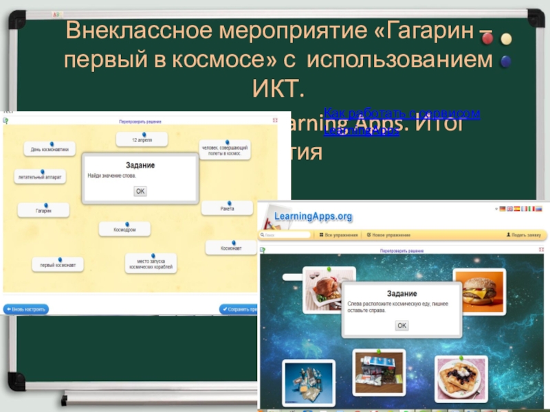 Слайд 16 Внеклассное мероприятие «Гагарин – первый в космосе» с использованием ИКТ