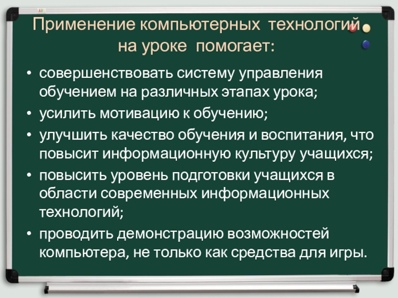 Слайд 11Применение компьютерных технологий на уроке помогает: