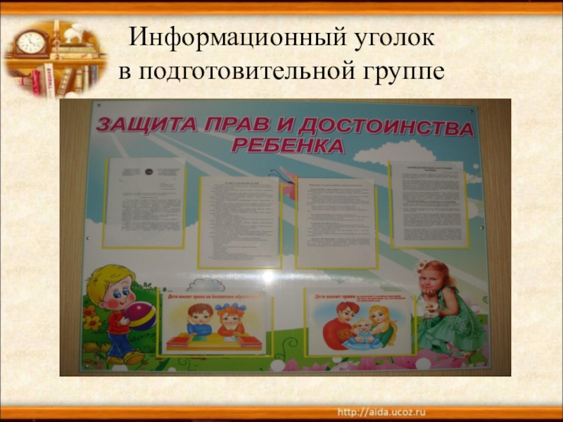 бесед, консультаций для родителей и педагогов, праздников и досугов для родителей, фотографии занятий, оформление информационного стенда «Защита прав и достоинств ребенка».