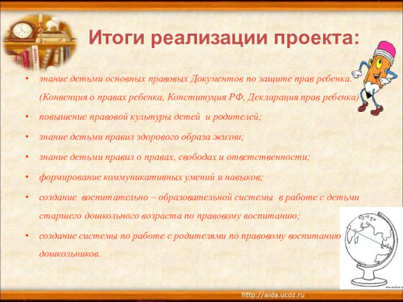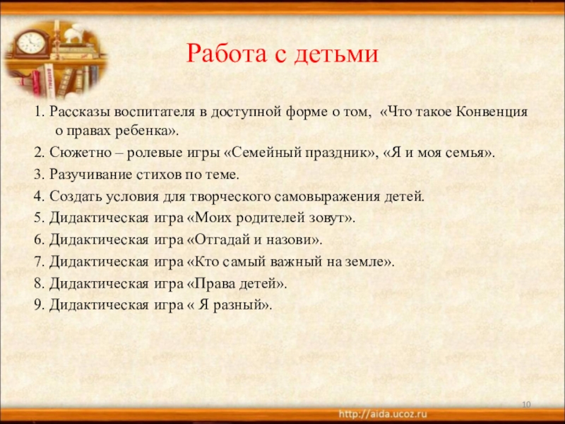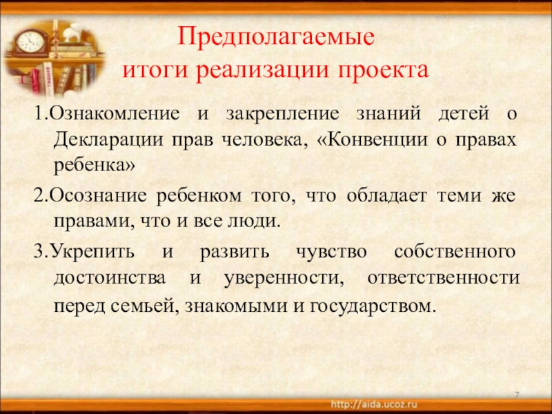 1.Ознакомление и закрепление знаний детей о Декларации прав