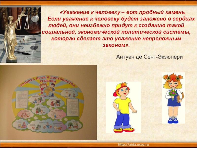 Слайд 4 «Уважение к человеку – вот пробный камень