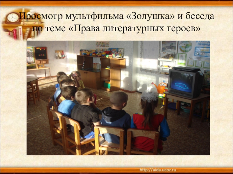 Слайд 26Просмотр мультфильма «Золушка» и беседа по теме «Права литературных героев»