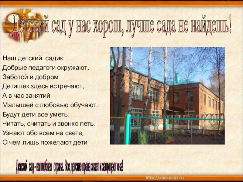 Слайд 20Детский сад у нас хорош, лучше сада не найдешь!