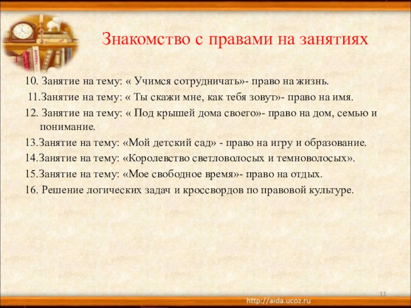 11.Занятие на тему: « Ты скажи мне, как тебя зовут»- право на имя.