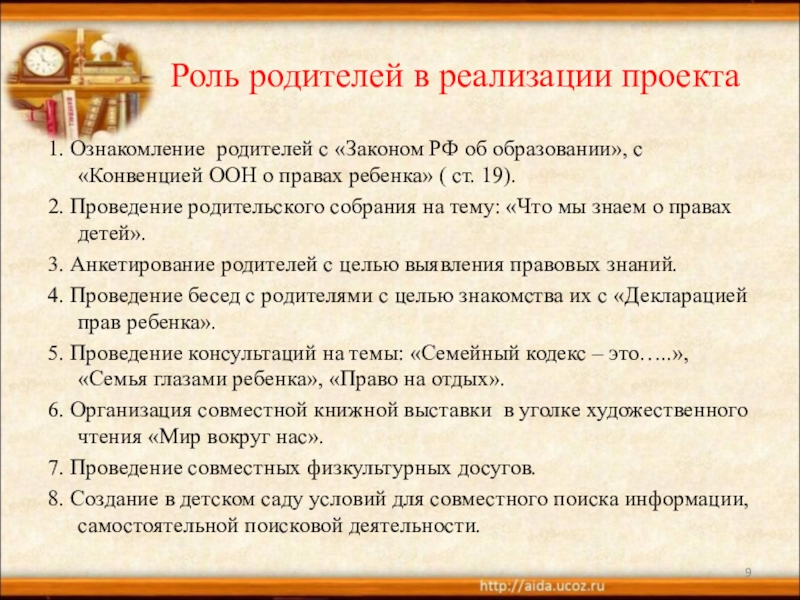 2. Проведение родительского собрания на тему: «Что мы знаем о правах детей».