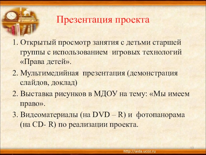2. Мультимедийная презентация (демонстрация слайдов, доклад)