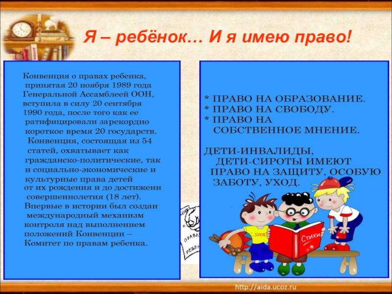 по защите прав ребенка. (Конвенция о правах ребенка, Конституция РФ, Декларация прав ребенка)