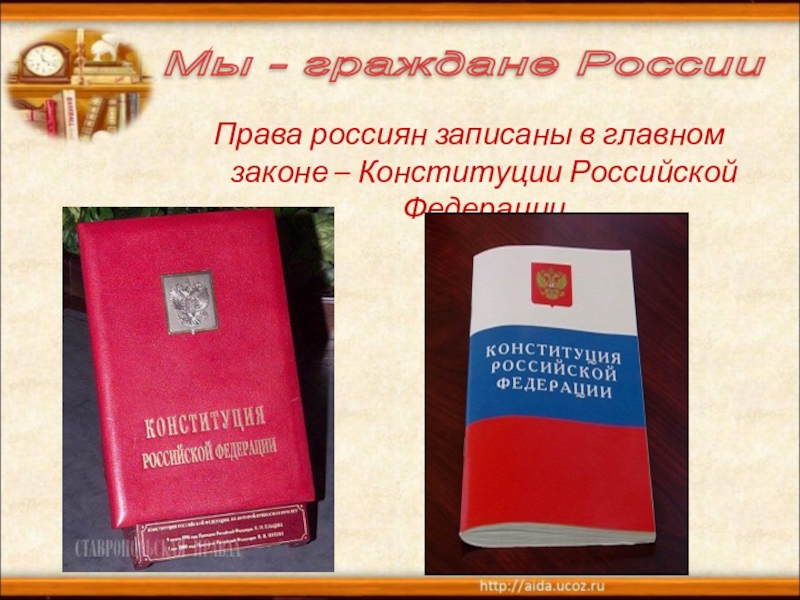 Слайд 14Права россиян записаны в главном законе – Конституции Российской Федерации