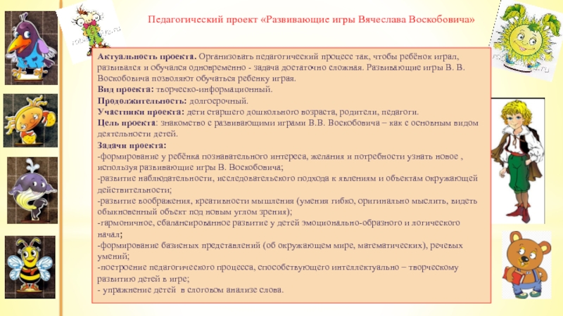 Педагогический проект «Развивающие игры Вячеслава Воскобовича»