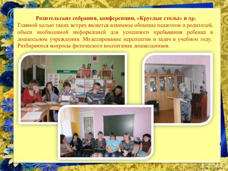Слайд 7Родительские собрания, конференции, «Круглые столы» и др.