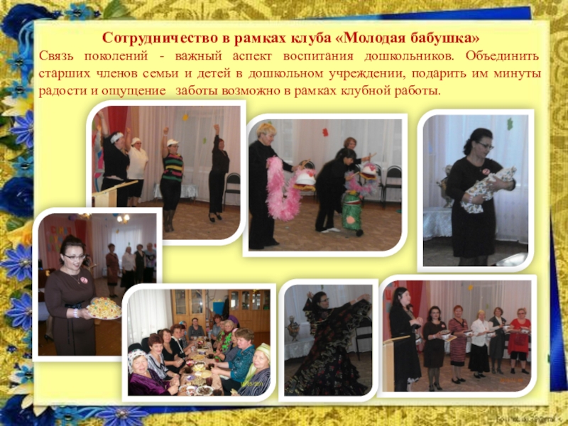 Слайд 8Сотрудничество в рамках клуба «Молодая бабушка»