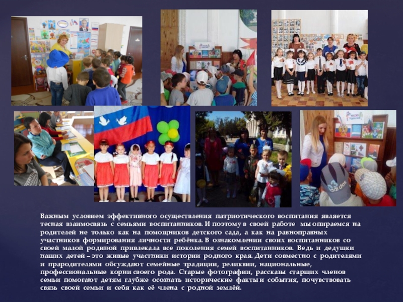 и воспитанию патриотизма у воспитанников. Ведь формирование отношения к стране, государству, где живёт человек, начинается с детства
