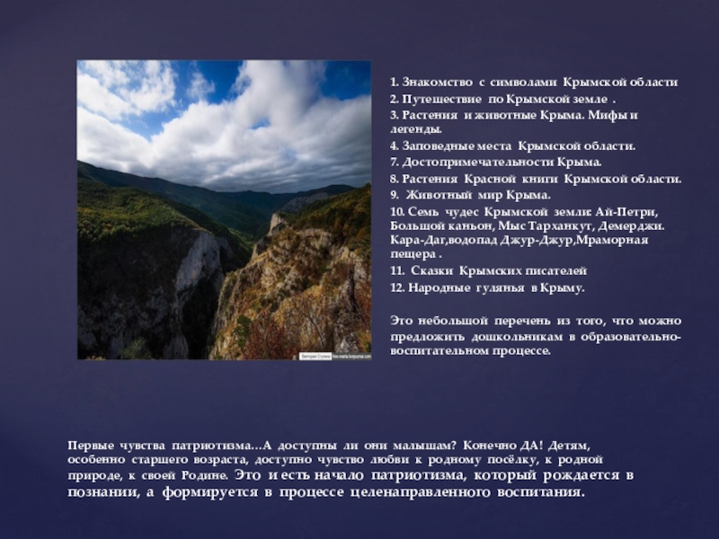 6.Обогащать знания детей о природных богатствах Крыма, их роли в социальном и экономическом развитии.