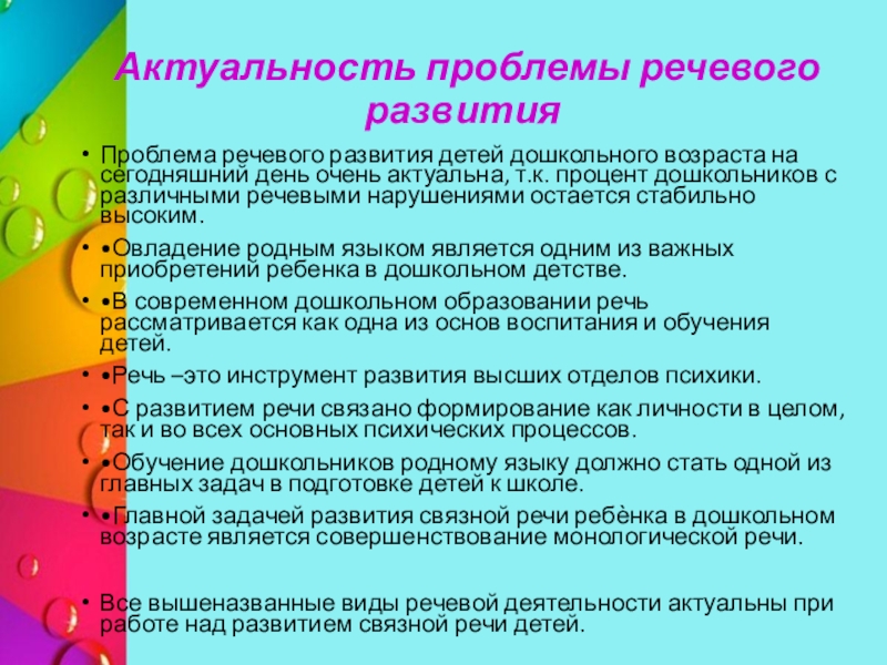Проблема речевого развития детей дошкольного возраста на сегодняшний
