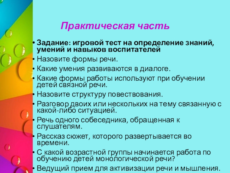 Задание: игровой тест на определение знаний, умений и навыков воспитателей