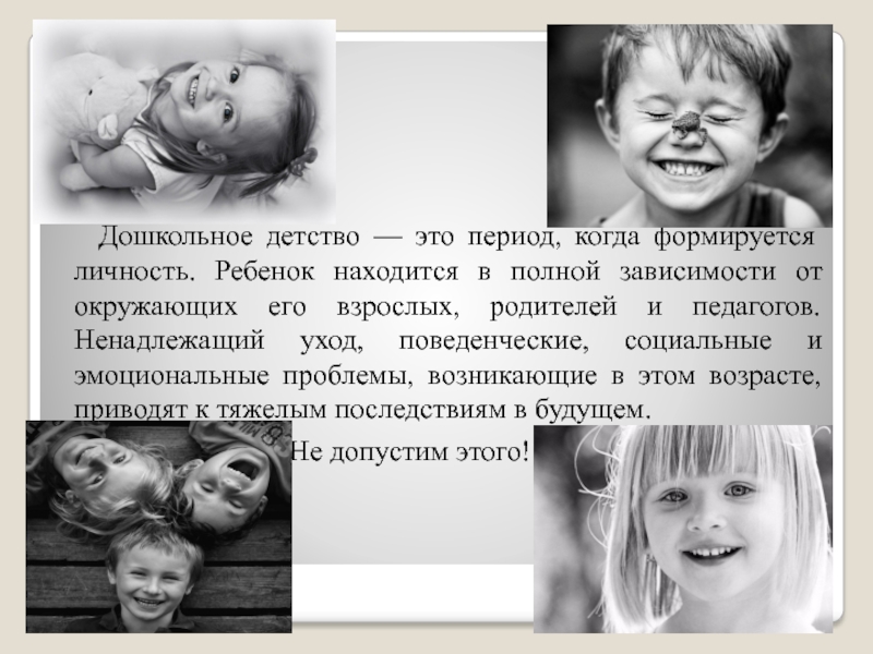 Слайд 14 Дошкольное детство — это период, когда формируется личность. Ребенок