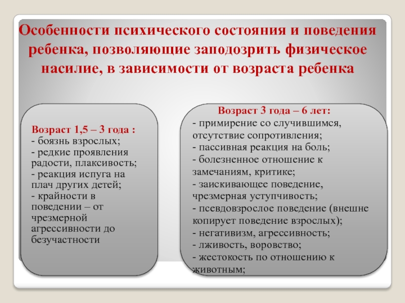 Слайд 9Особенности психического состояния и поведения ребенка, позволяющие заподозрить физическое насилие, в