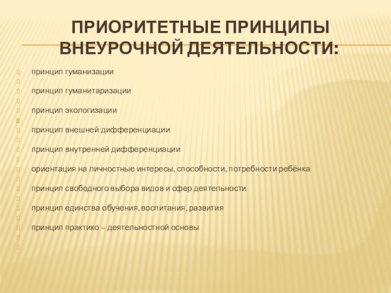 Слайд 6 Приоритетные принципы внеурочной деятельности: