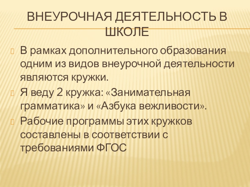 Я веду 2 кружка: «Занимательная грамматика» и «Азбука вежливости».