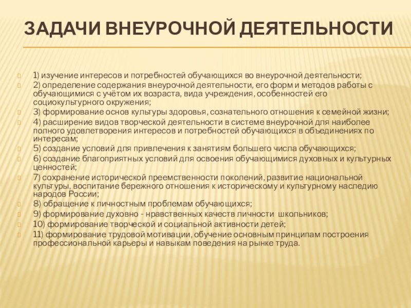 1) изучение интересов и потребностей обучающихся во внеурочной деятельности;