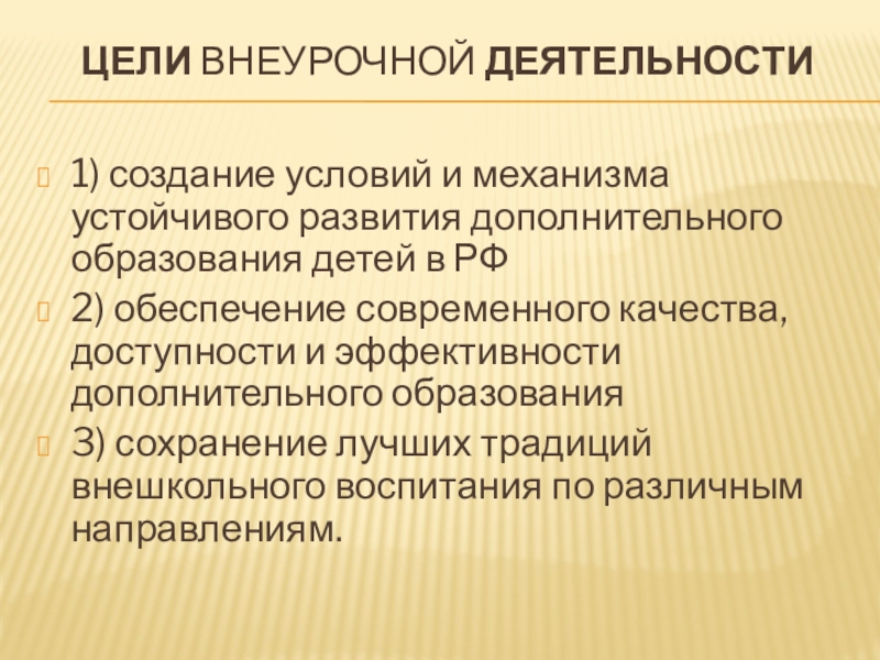 3) сохранение лучших традиций внешкольного воспитания по различным направлениям.