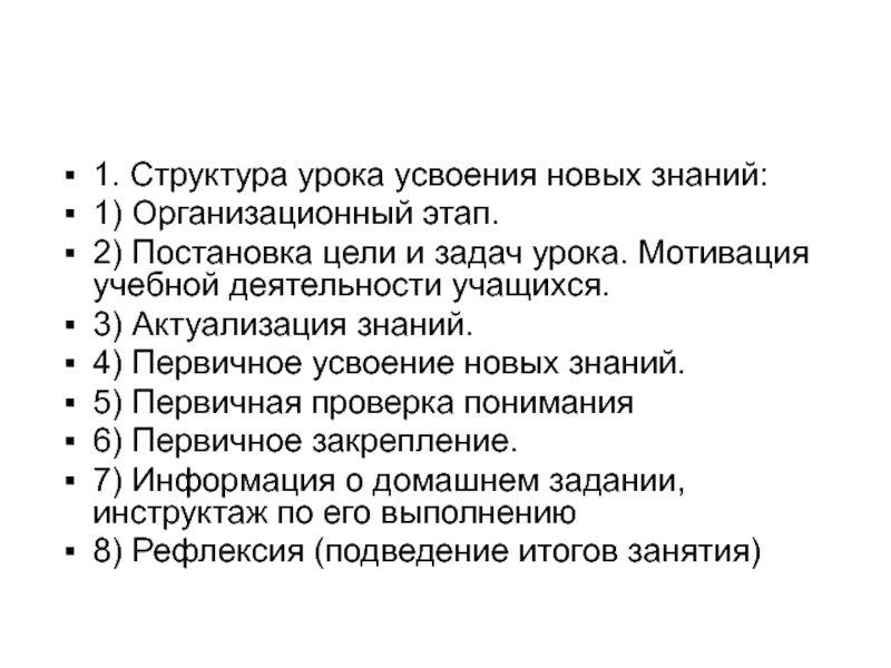 1. Структура урока усвоения новых знаний: