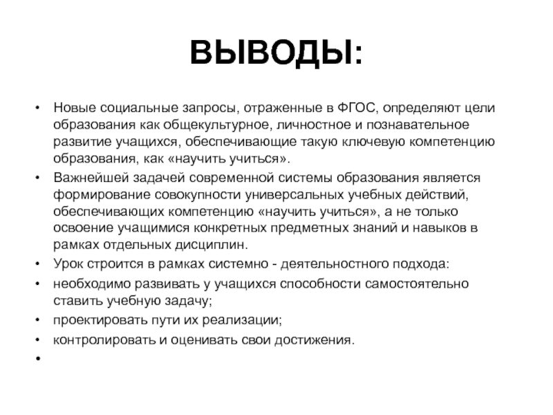 Новые социальные запросы, отраженные в ФГОС, определяют цели образования как общекультурное,