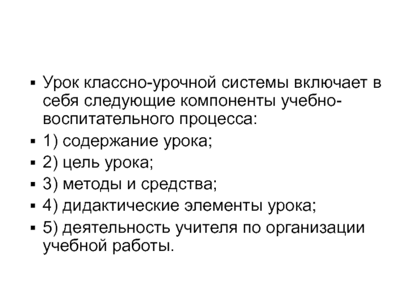 4) дидактические элементы урока;