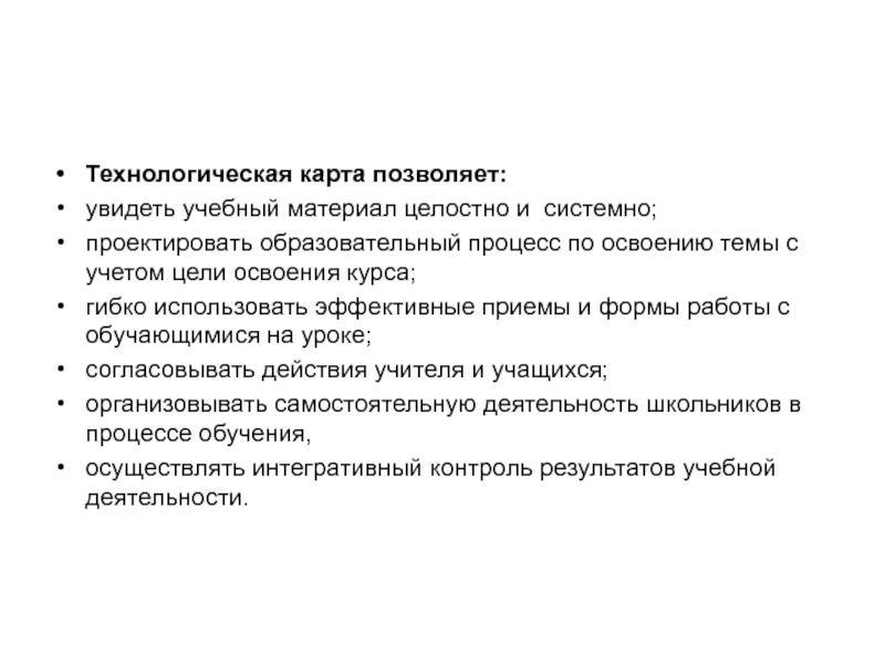 Технологическая карта позволяет: