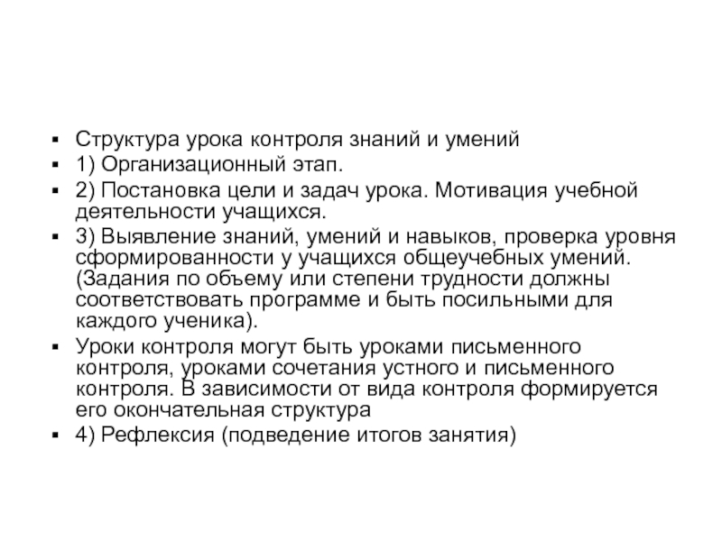 Структура урока контроля знаний и умений