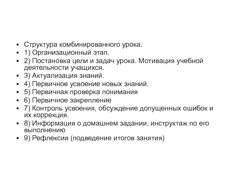 Структура комбинированного урока.