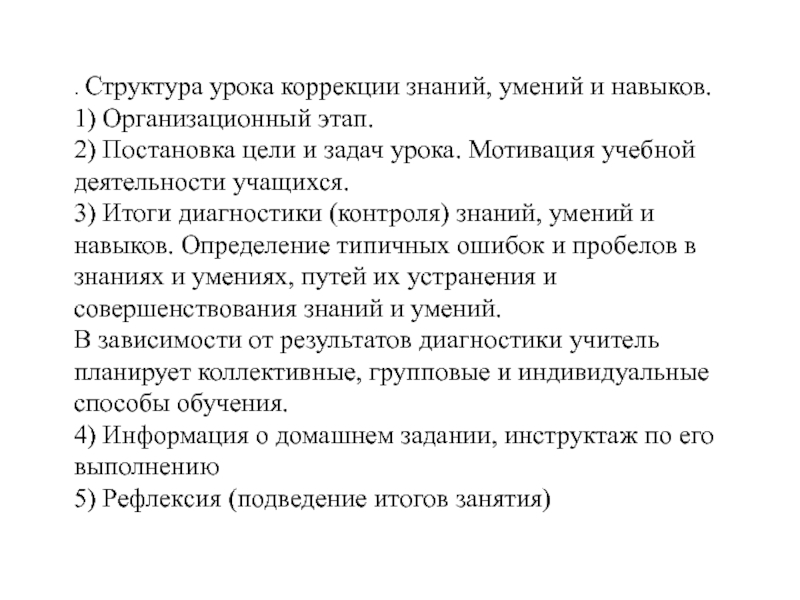 . Структура урока коррекции знаний, умений и навыков.