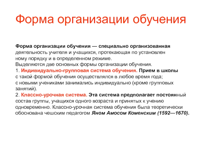 Урок является коллективной формой обучения, которая