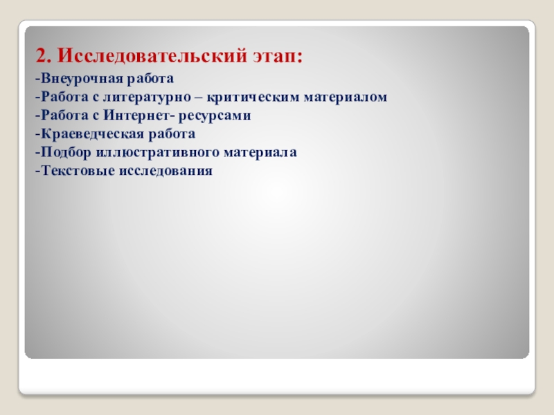 Слайд 112. Исследовательский этап: