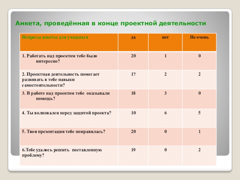 Слайд 18Анкета, проведённая в конце проектной деятельности