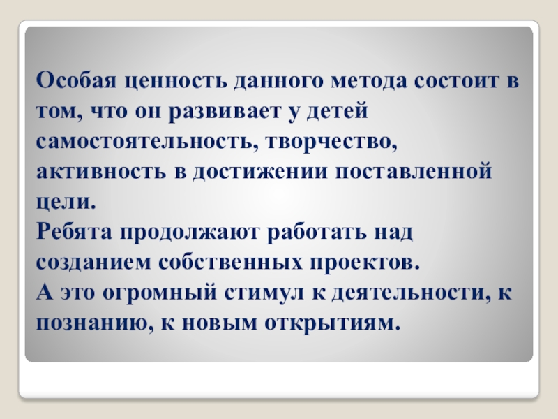 Слайд 21Особая ценность данного метода состоит в том, что он развивает у