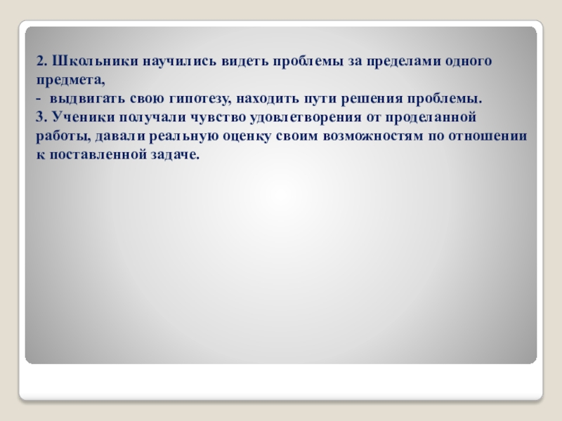 Слайд 162. Школьники научились видеть проблемы за пределами одного предмета,