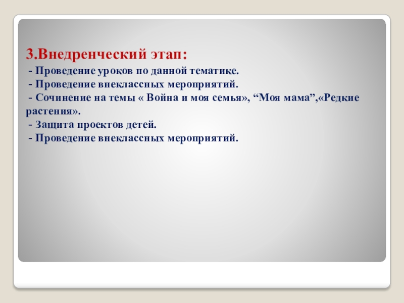 Слайд 123.Внедренческий этап: