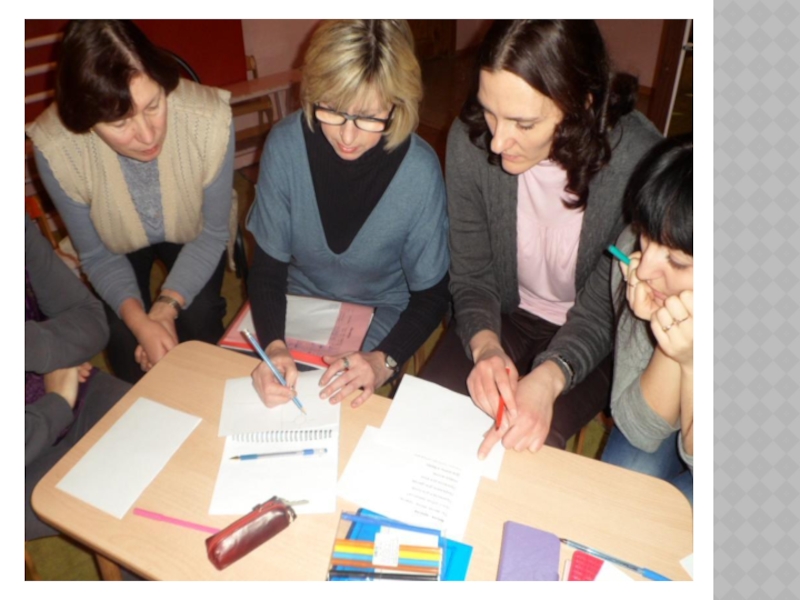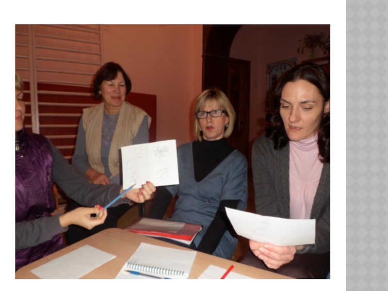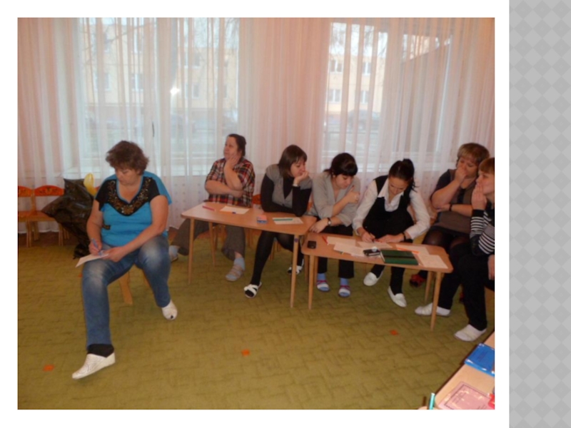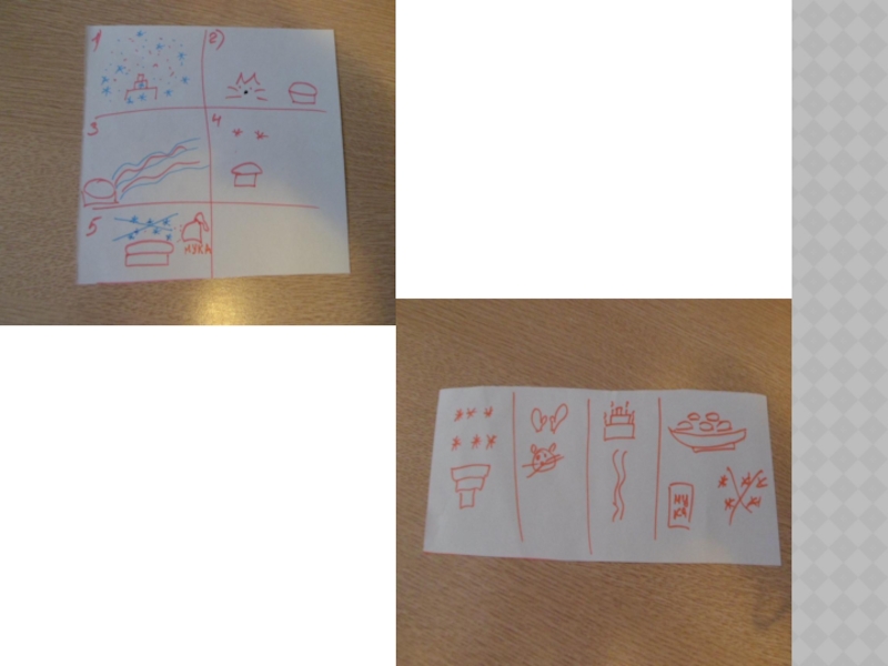 Как я умею пользоваться приемами мнемотехникиЦель: научить педагогов пользоваться мнемотаблицами, мнемосхемами(создавать и читать их).Оборудование: цветные карандаши, листы белой бумаги, стулья два столика, фишки для жеребьевки команд.