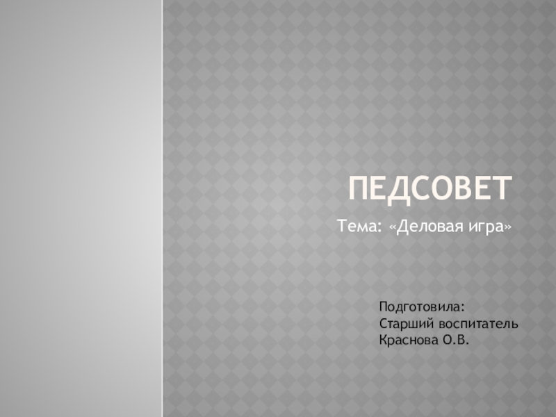 ПедсоветТема: «Деловая игра»Подготовила:Старший воспитательКраснова О.В.