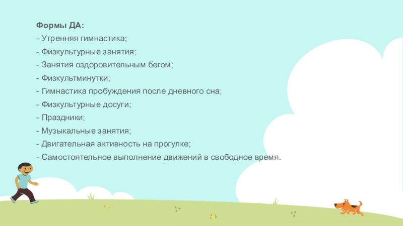 Слайд 13 Выше описанные формы ДА по физической культуре, дополняя и обогащая